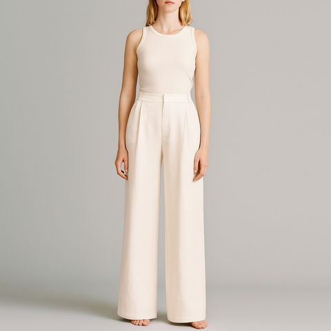 مخصص بالجملة عالية الخصر أبيض مستقيم أنيق السيدات السراويل الساق واسعة السراويل للنساء