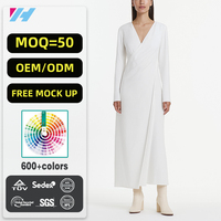 فستان طويل أنيق للسيدات بأكمام طويلة من القطن والكتان، تصميم ملفوف، إنتاج مخصص حسب الطلب، رائج البيع