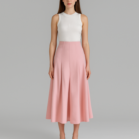 Özel sıcak satış toptan kadınlar A-line yüksek bel zarif pembe Midi etek