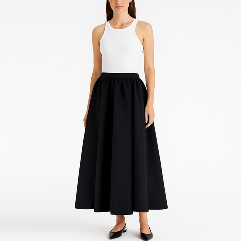 Kadınlar için özel yaz yüksek bel A-line bayanlar siyah Midi uzun etekler